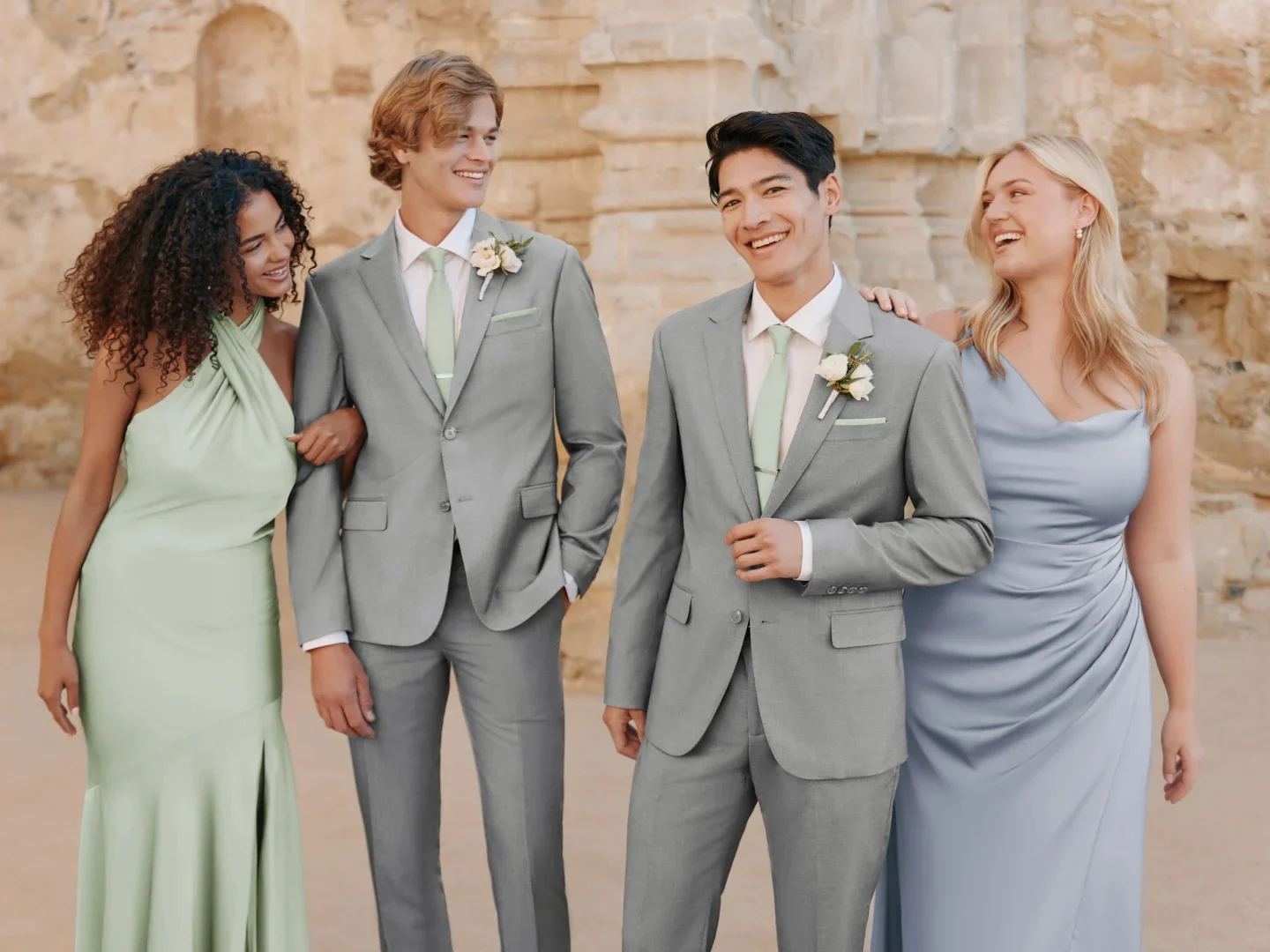 Make your wedding party vision come to life, with our favorite groomsman suit & bridesmaid dress pairings!