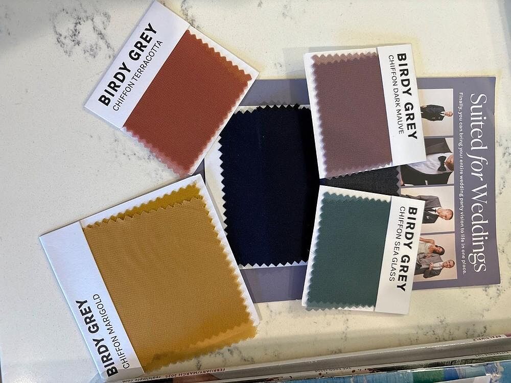 swatches arrived so quickly and helped us pick the perfect suits and bridesmaids dresses!