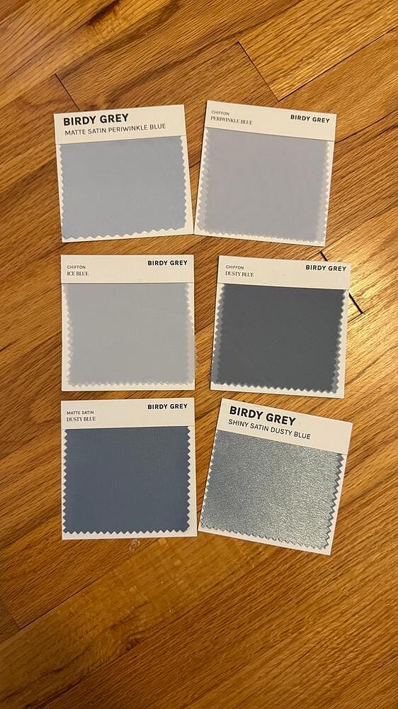 loved all of my birdy grey swatches, but chiffon periwinkle was the winner! it’s the perfect warmer toned light (but not too light) blue for my late summer garden party wedding. my girls are so excited to wear it!